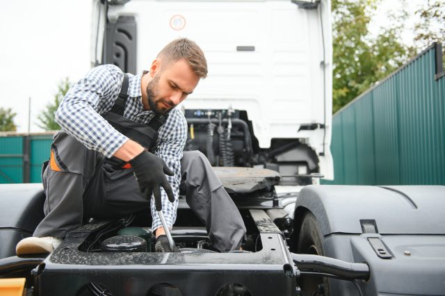 Male Mechanic repairing the truck